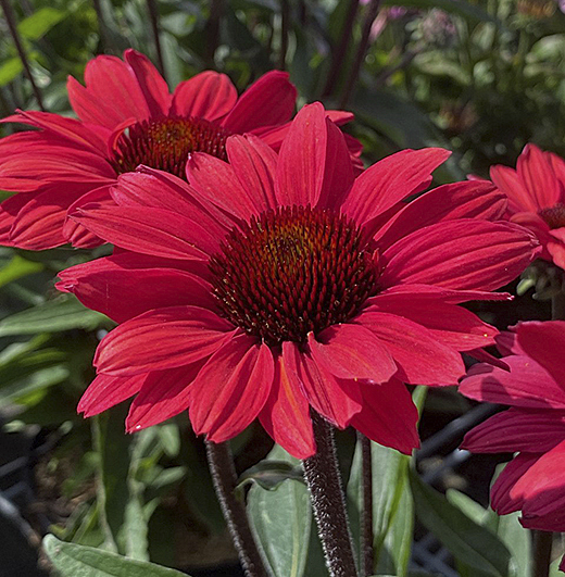 Compact clumps producing large rich red flowers from mid-summer to autumn. Full sun. 50-60cm. high.