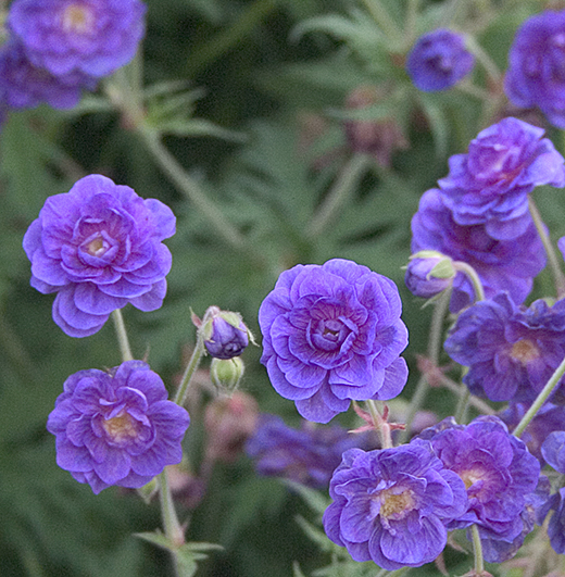 Geranium pratense 'Plenum Violaceum' An exquisite double-flowered cultivar with neat rosette flowers in a rich violet-blue, tinged purple in the centre. A well grown clump is a magnificent sight. 60cm. high & 60cm. across. Price: £7.70 RHS Award of Garden Merit