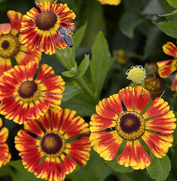 Helenium 'Feuersiegel' Upright habit with striking bi-coloured flowers in yellow and red petals surround a brown central disc. Flowering July into early autumn. 120cm. high. Price: £7.50 RHS Award of Garden Merit