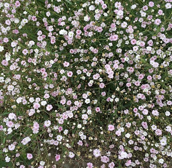 Gypsophila 'Rosenschleier' A cloud of tiny pale-pink double flowers form a mound 45cm. high. Good on a rockery or at the border front in sun and well drained soil. Price: £7.20