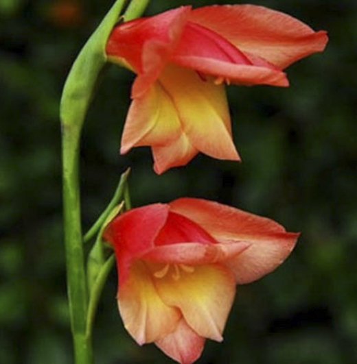 Gladiolus papilio 'David Hills' A spectacular Gladiolus papilio hybrid. Nodding peachy-red flowers, cream within, on arching 100cm. stems. Late summer flowering, hardy here in S.W. Scotland.