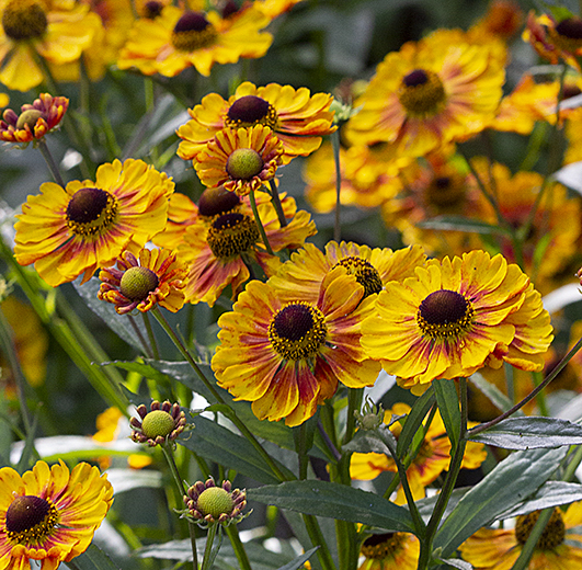 Helenium 'Strawberry Sundae' Compact habit and sturdy upright stems carry numerous coppery- crimson flowers often tipped yellow at petal edges. Long flowering, summer and autumn, for sun or part shade. 60cm. high. Price: £7.50