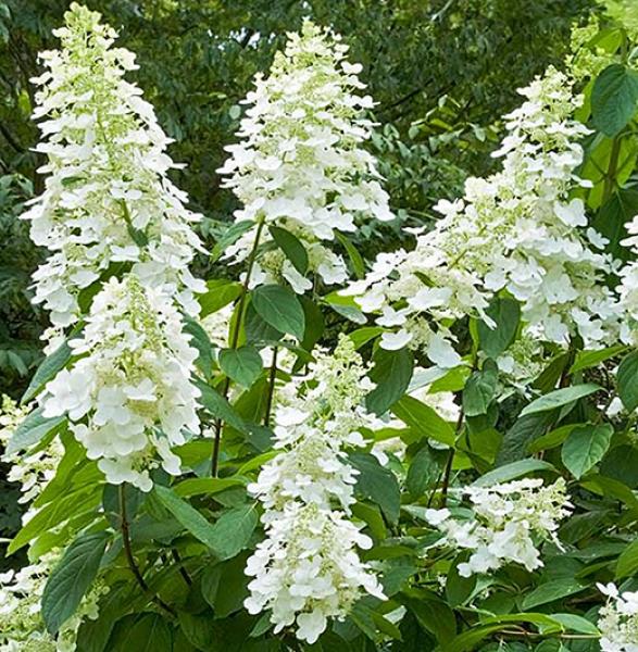 Hydrangea paniculata 'Unique' Large vigorous shrub with very large conical flower heads, white, maturing to pale pink from late July to September. Sun or part shade. Up to 2m. high. Price: £18.50