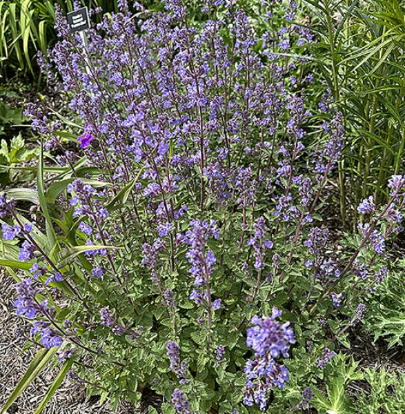 Nepeta x faassenii 'Purrsian Blue' A very floriferous compact 'Catmint' producing a mass of periwinkle-blue flowers from early summer to early autumn. Low maintenance and drought-tolerant easy plant for a sunny site. 45cm. high. Price: £7.50