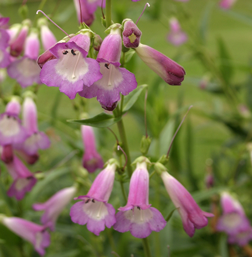 Penstemon 'Hidcote Pink' Large mid-pink flowers streaked heavily with deeper pink inside. One of the hardiest and most vigorous of the pink Penstemons. 60cm. Sun & good drainage.