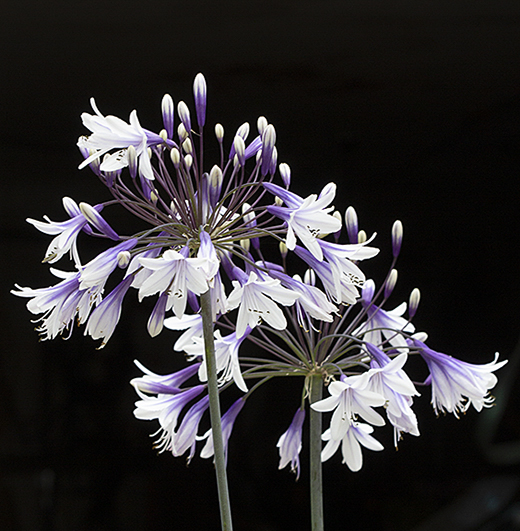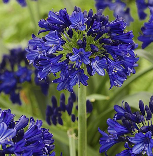 Agapanthus 'Midnight Sky' Semi-evergreen clumps of foliage produce long-flowering intensely dark-blue flowers in July and August. For full sun, Fully hardy, but a mulch is recommended in very cold gardens. 40cm.high. Price: £8.00 Notes: Harmful if eaten