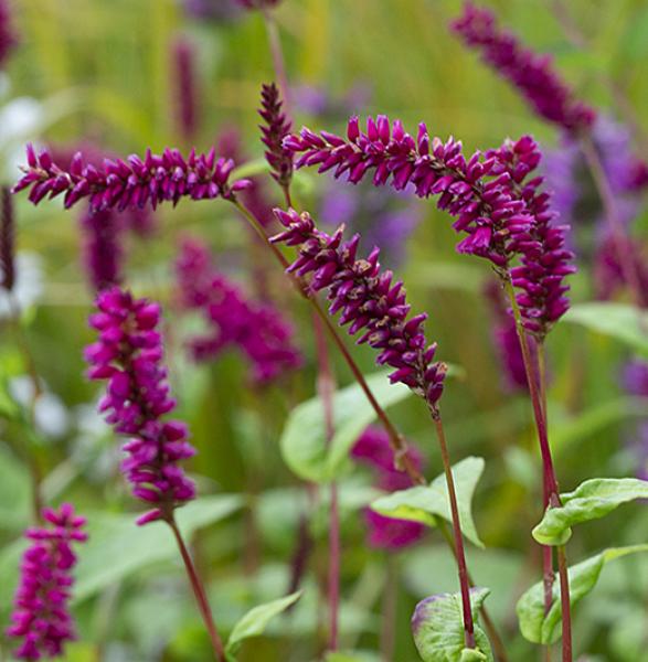 Persicaria amplexicaulis var. pendula This form has graceful drooping flower spikes in a dark maroon-pink colour. Fantastic near the border edge. For sun or part shade. 70cm. high. Price: £8.00