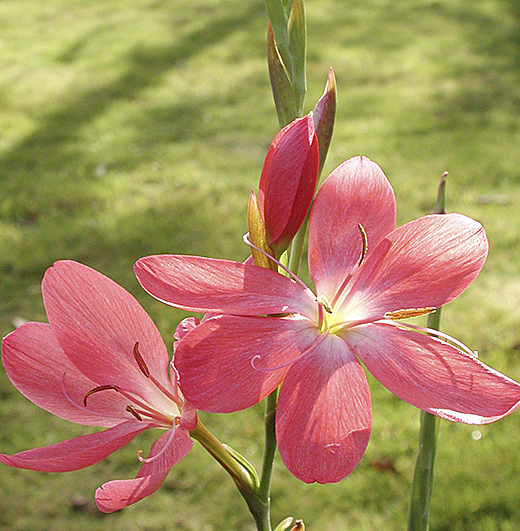 Schizostylis coccinea 'Zeal Salmon' Stems of large, deep-salmon-pink flowers from the end of August until frosts. 50cm. high. Price: £7.50