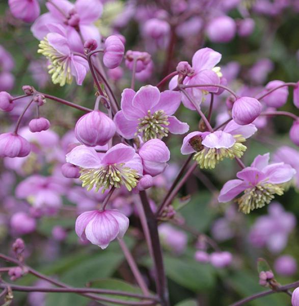 Thalictrum 'Fairy Wings' (EM) Another new hybrid from our nursery. Beautiful clumps of lacy foliage produce many stems covered in lilac-pink flowers from May to July. Nice at the border front in sun or part shade. 45cm high. Price: £8.00
