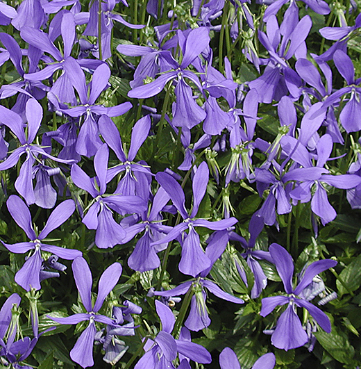 Viola cornuta 'Spider' (EM) Excellent cultivar with elongated 'Spidery' deep lavender purple petals. Has a carpeting habit similar to cornuta minor cultivars from which it almost certainly originates. 15cm. high.