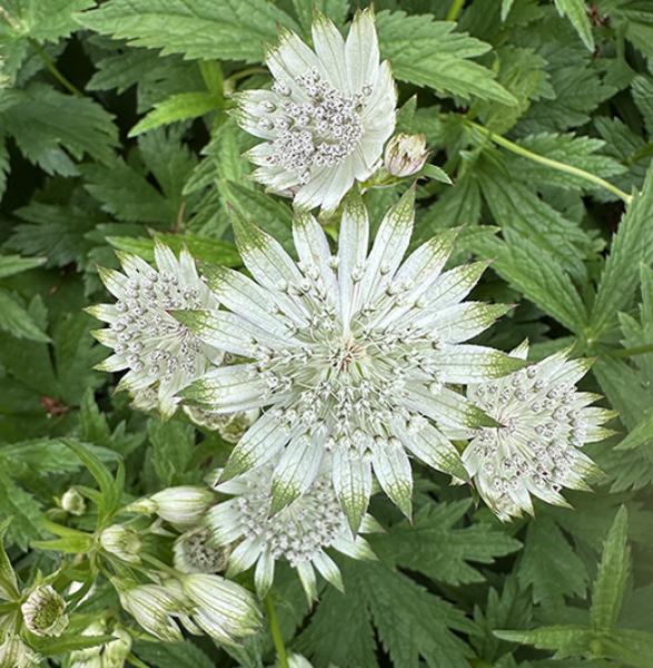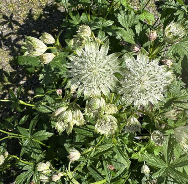 Astrantia major 'Ellenbank' A very vigorous and long flowering Astrantia, producing a mass of white flowers all summer. Easy to grow in sun or shade. 90cm. high. Price: £8.00