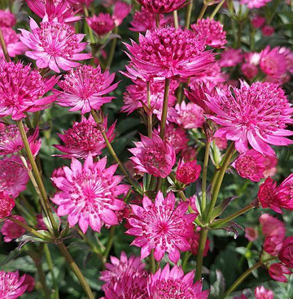 Astrantia major 'Capri' A new Astrantia producingdeep pink flowers all summer. Re-blooms if dead headed.For fertile soils in sun or part shade. 60cm. high. Price: £8.00