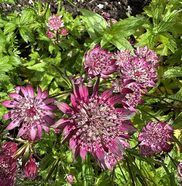 Astrantia 'Burgundy Manor' Long-flowering, vigorous variety with large burgundy-red flowers. Repeat flowers if cut back, until autumn. Fertile soil and sun or part shade. 70cm. high. Price: £8.00 RHS Award of Garden Merit
