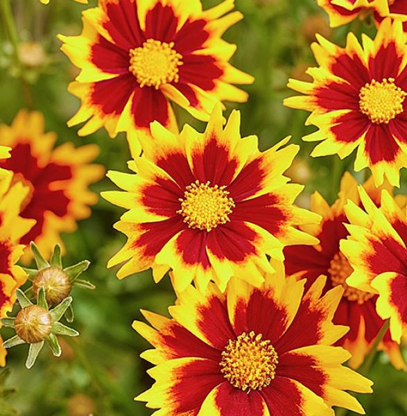 Coreopsis 'Solar Jewel' A compact bushy perennial producing a mass of scarlet and yellow bicoloured flowers from late spring until autumn. Price: £7.50