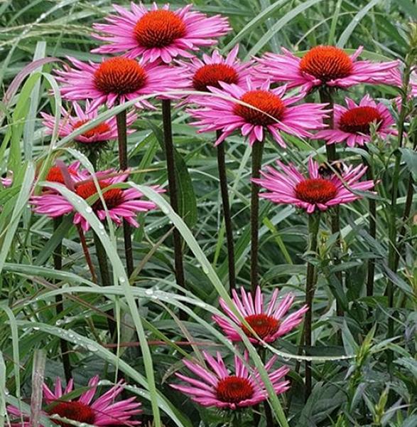 Echinacea purpurea 'Magnus Superior' An improvement on Echinacea 'Magnus' with dark carmine-red flowers held on purple stems. 100cm. high.