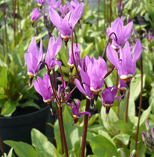 Dodecatheon meadia 'Queen Victoria' Commonly called 'shooting-stars', a good bulbous perennial producing clusters of bright pink flowers in spring and early summer. Prefers a shady site. 30cm. high. Price: £7.00
